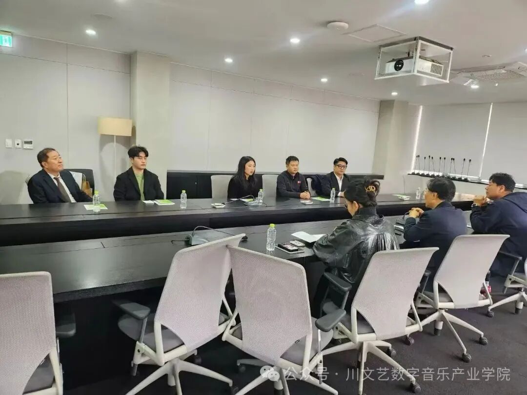 考察期间,代表团还与知名学者金老集教授进行深度座谈,并实地参观其工作室,系统了解其在流行声乐发声训练、器乐即兴演奏教学以及跨国音乐作品创编等方面的研究成果。金教授团队的研究方向与数字音乐产业学院的专业建设高度契合。孔会长与金教授还就天府地区流行音乐产业发展作专题分享,重点探讨了流行器乐与演唱在文旅演出及数字音乐IP开发中的实际应用,进一步增进了川韩艺术领域的互信,凝聚了合作共识。同时,考察团向孔会长一行发出诚挚邀请,欢迎其于今年12月访问四川,共同推进流行音乐人才联合培养、跨国演唱赛事合作及器乐大师工作坊建设等深化合作项目。